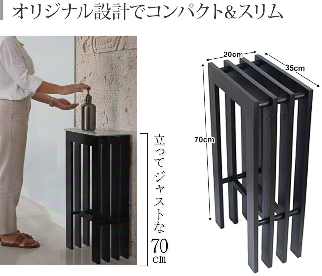 サイズは横幅35cm×奥行20cmの超スリムでコンパクトな設計。ちょっとしたスペースがあればどこにでも置くことができます。