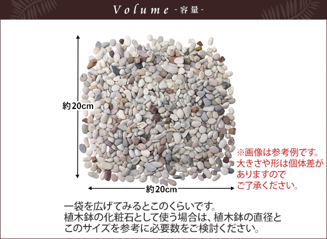 観葉植物などの植木鉢の化粧石(化粧砂利)としてもおすすめです。土が隠れると清潔感もありますし、なにより見た目に美しくおしゃれなインテリアになります。